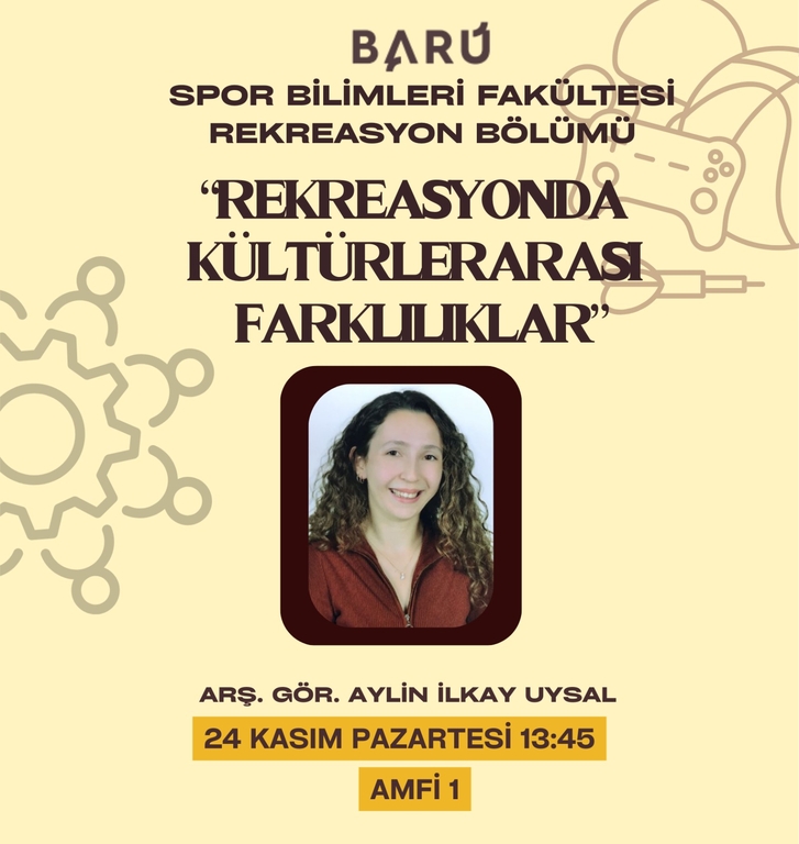 Bölümümüz, “Rekreasyonda Kültürlerarası Farklılıklar” başlıklı bir etkinlik düzenliyor. Etkinlik, kültürel çeşitliliklerin rekreasyon alanındaki yeri ve etkileri üzerine odaklanacak.